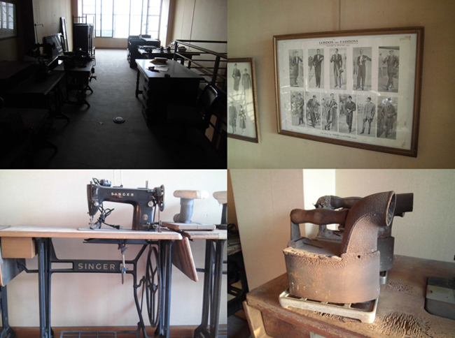 私はお店のビルを旧店主から譲り受けたクライアント(以下オーナーさん)からオフィスデザインの相談を受けたました。リノベーションという建築プロジェクトは、建主が変わるタイミングでよく起こります。これがその瞬間かと私は改めて実感しました。オーナーさんとさっそく現場を見に行くと、そこには昭和の面影残るたくさんの家具や雑貨が残されていました。建物は2階建てとなっていて、1階をオーナーさんの事務所スペースとして使い、2階スペースを当時私の事務所があった仲小路ビル地下のシェアオフィス「MAG」のようななスペースをつくれないかとのことでした。残されていた家具たちは、建物や店主、訪れるお客さんとともに長い歴史を歩んできました。木製ショーケースには陶器、デスクにはアクセサリーなどが陳列していました。数多くのミシンとアイロンが置かれているのも印象的でした。ミシンは足でこいで動かすものであり、アイロンは石炭を中に入れて使うものでした。もはやその姿は飾ってながめていたいアンティークでした。このまま使われないのであれば廃棄にするしかないそんな状況でした。