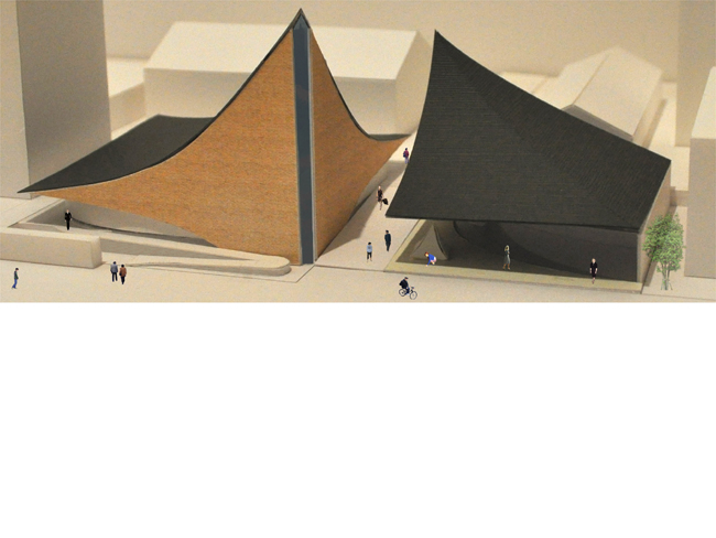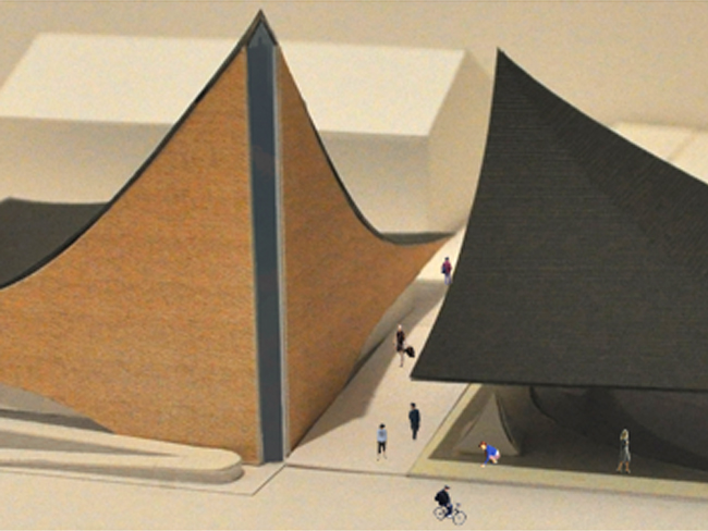 こちらはとある学校の構内に計画した礼拝堂+文化センターです。