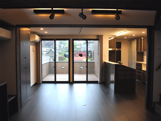 こちらは縦長の敷地に建てられた、事務所併用住宅の計画です。お施主様がおもい描く働きながら暮らす現代の長屋、そしてリビングを中心としたペットと共に暮らす空間をテーマとして、建物づくりをおこなってまいりました。