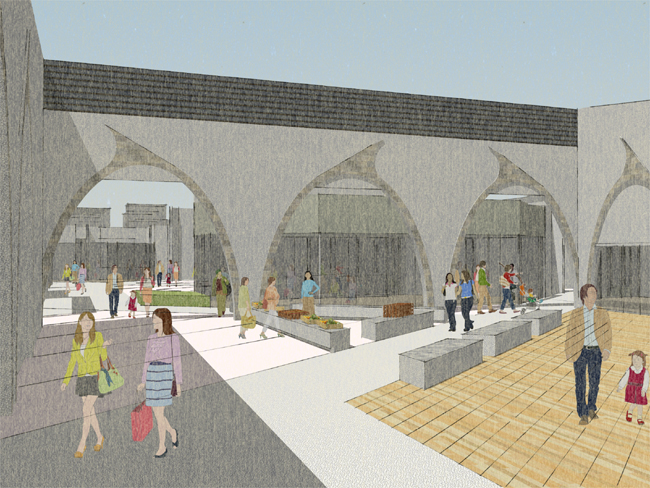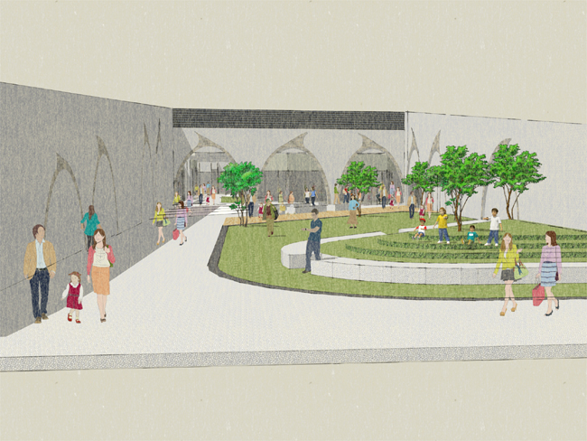 こちらは旧市街地にある交流センター+広場の計画です。